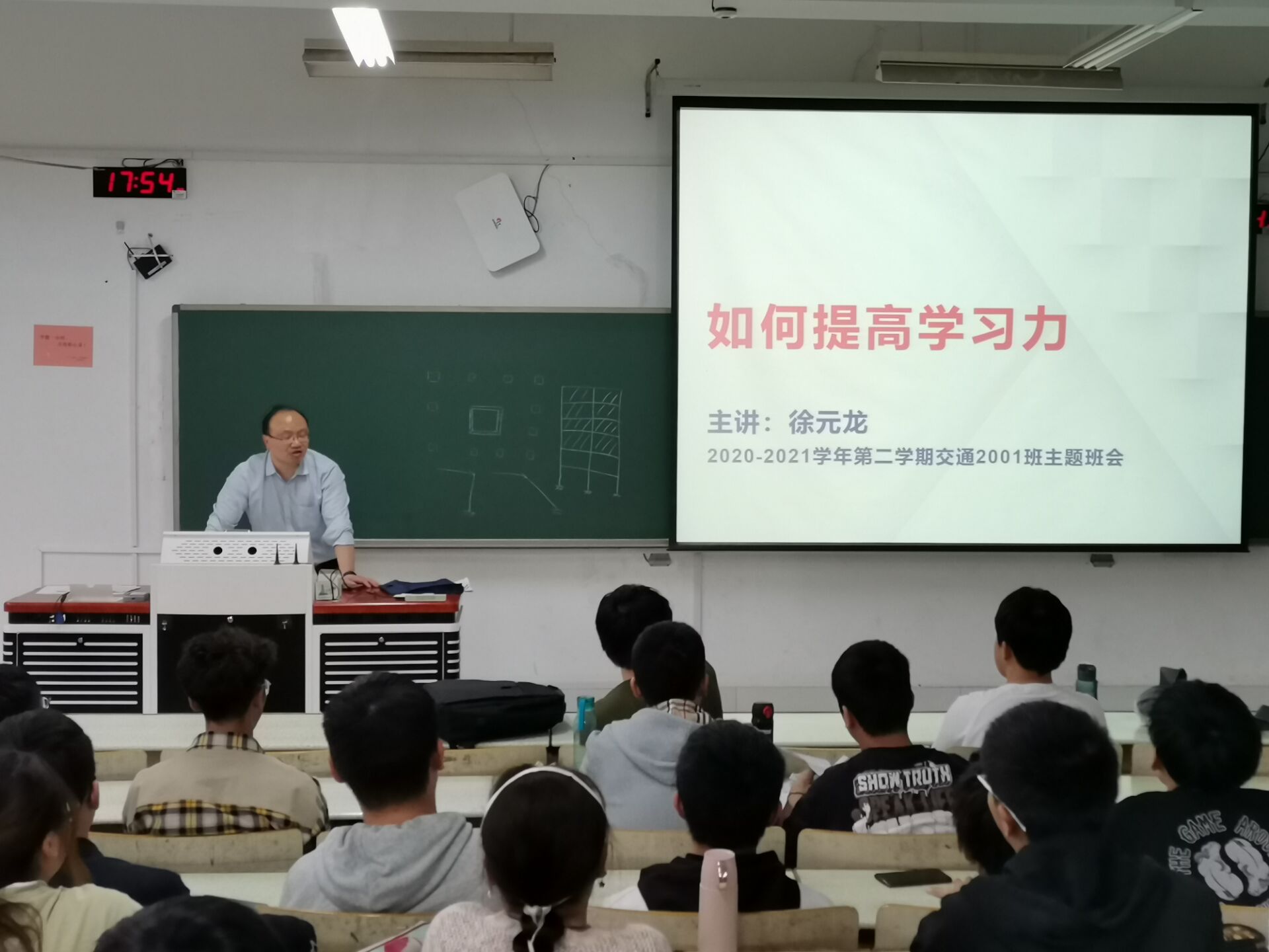 徐老师从学院2021届毕业生就业情况分析了学院各个专业就业前景,提醒同学们只有学习速度超过社会变化速度,才能在日益激烈的竞争中脱颖而出。徐老师引用近期印发的《国民经济和社会发展第十四个五年规划和2035年远景目标纲要》中明确提出的“加快建设交通强国”引导同学们要坚定理想信念,紧密结合国家和社会发展目标提升自我专业价值,围绕“如何提高学习力”鼓励同学们在一年级就培养出快速学习的能力,并向大家强调:不仅需要肯学,还要掌握科学的学习方法,做到善学来提高自身的学习效率。