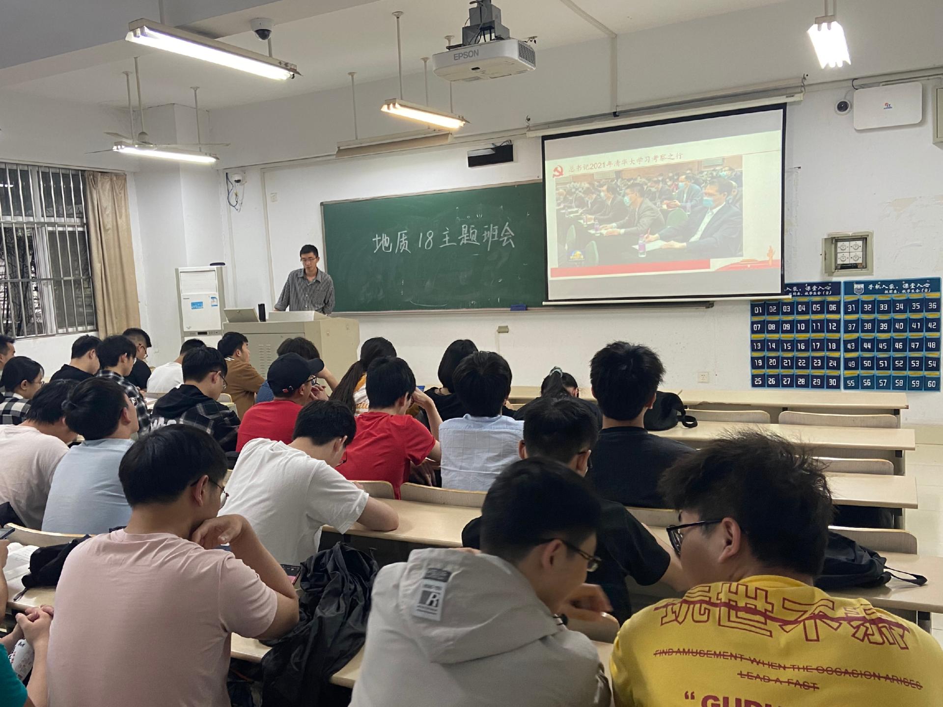 主题班会分为四个部分,分别是:爱国爱民,树立坚定理想;锤炼品德,追求全面发展;勇于创新,积极服务社会;实学实干,练就过硬本领。各年级创新方式方法,根据同学们的关注点广泛开展讨论。18级地质专业邀请优秀学子开展班级宣讲,19级结合学风建设倡导同学们夯实专业基础提升专业技能增长建设强国的才干,20级结合党史学习教育和思修课上的爱国主义教育畅谈新时代老员工应该怎样去爱国。