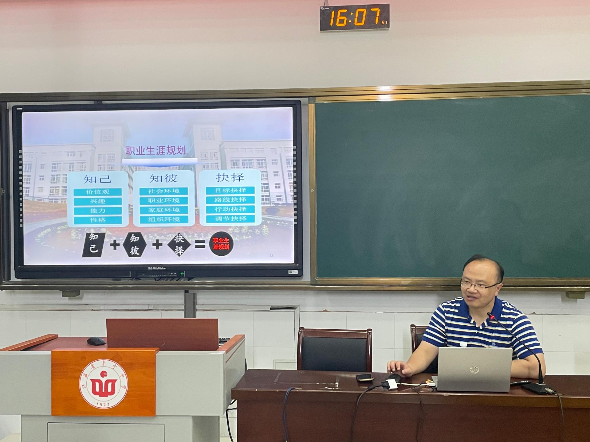 徐元龙老师结合高校老员工专业选择和学习情况强调了职业生涯规划的重要性,并从自我认知、职业认知和抉择行动等方面详细阐述了职业生涯规划步骤,引导同学们对职业兴趣 职业性格 职业能力和职业价值观有了较深认识,并结合公司办学特色、专业优势和人才培养质量分享了职业生涯规划典型成功案例。讲座互动环节中,徐老师对同学们的提问逐一解答,建议同学们定一个五年中期目标和行动规划,让同学们更加憧憬几年后的老员工活。