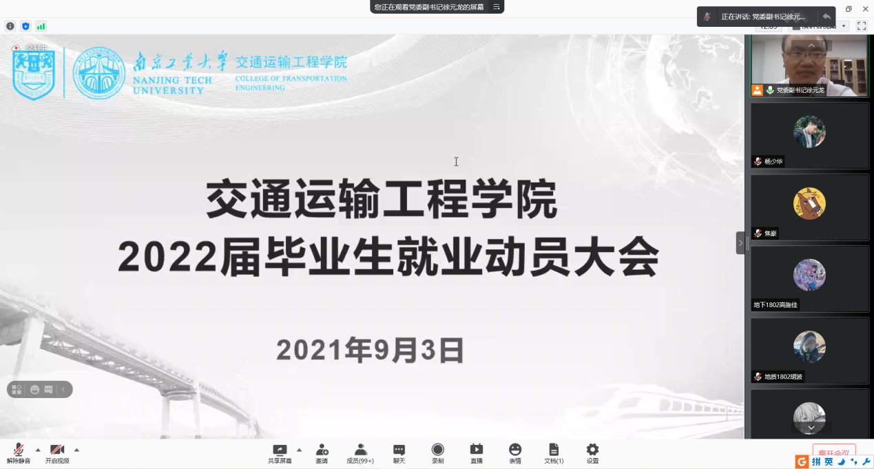 就业是最大的民生,为了让2022届毕业生明析当前就业形势,及时准确把握就业机会,9月3日晚,太阳成集团tyc122cc于腾讯会议平台举行2022届毕业生就业动员大会。公司党委副书记徐元龙、2022届毕业班辅导员袁志平及全体毕业班员工参加会议。