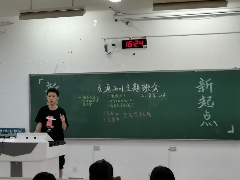 在同学们暑期经历分享中,班长孔欣怡同学分享了她参与疫情防控的经历特别是身在一线感受到中国共产党伟大的领导力量,升华了党史学习教育效果。曹磊等同学分享了暑期留校参与科技创新的感受,感受到科技兴国科技强国的重要意义。交通2001助理班主任申薇同学回顾了上一学年带领大家积极适应大学学习生活的经历,结合自己近期顺利保送至北京交通大学硕士研究生的准备过程,激励大家要及时制定目标并全力以赴,并不断提高目标发展自己。