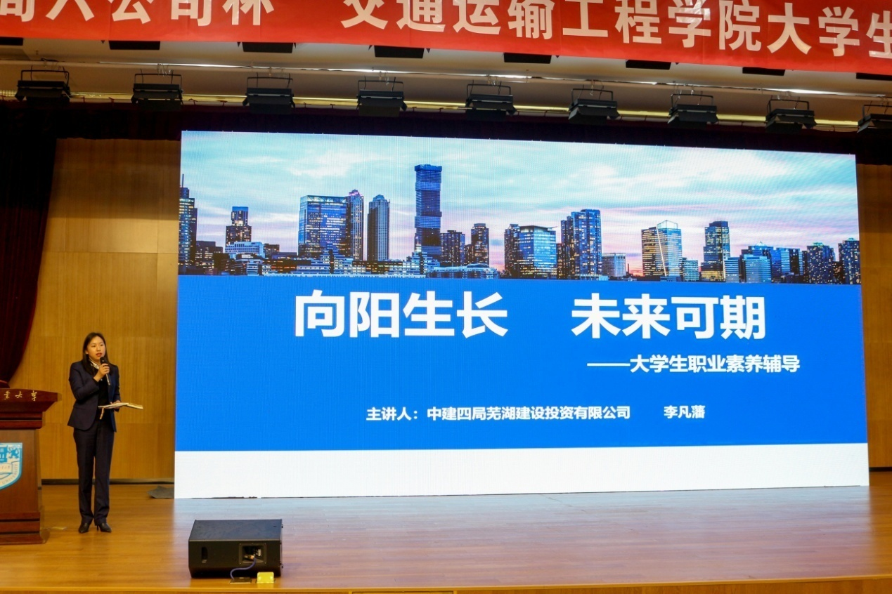 许翠梅书记在大赛致辞感谢中建四局六公司给予活动大力支持,希望同学们将生涯规划理念根植于心,积极沉浸体验职业,明确目标。张翔副部长向中建四局六公司授“最佳用人单位”牌。周峰经理向李凡藩副书记颁发校外职业生涯教育导师聘书。10位参赛选手通过作品展示了对自我认知和职业探索的分析,提出职业目标、发展路径和行动方案。经过激烈的角逐和比拼,地下1803吴禹含同学荣获大赛特等奖,地下1801苏俊霖、交通1802闫琦若等其他七位同学分别获得大赛一、二、三等奖。周峰经理围绕贡献力、耐久力、组织力、执行力、亲和力进行点评,结合自身求学经历鼓励同学们要勇于拼搏,胸怀未来。