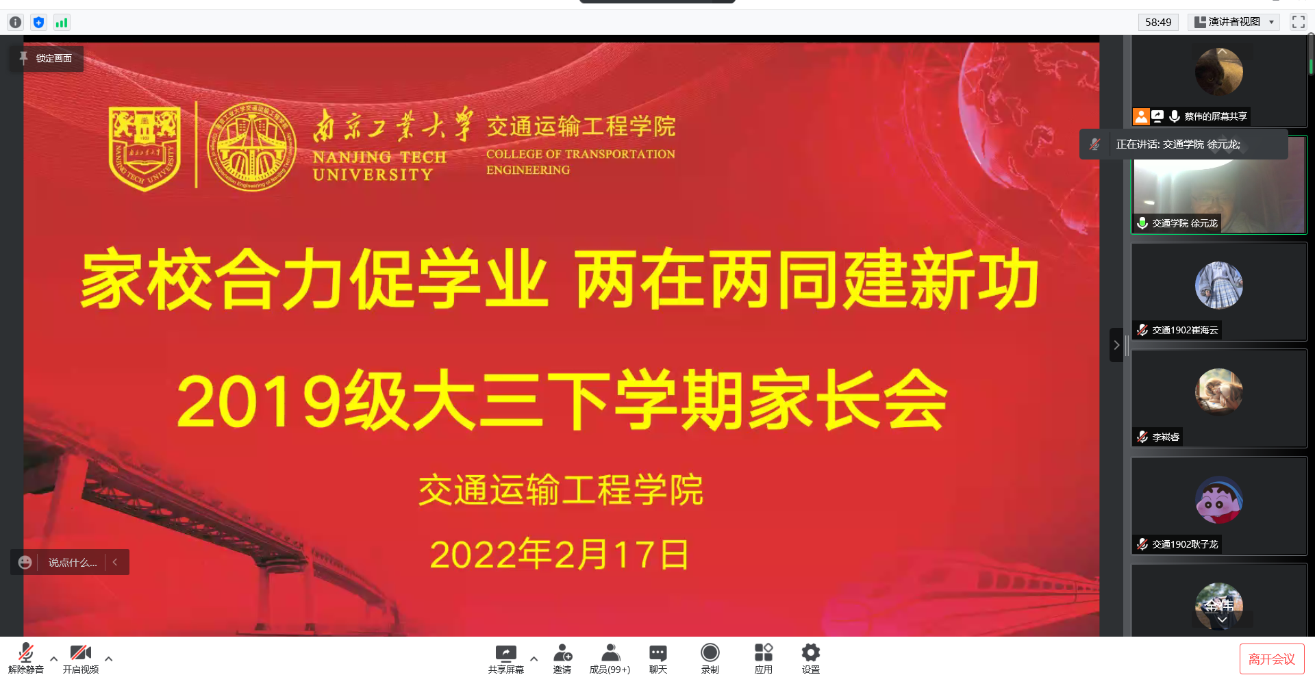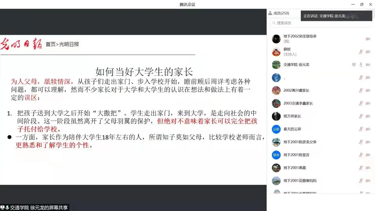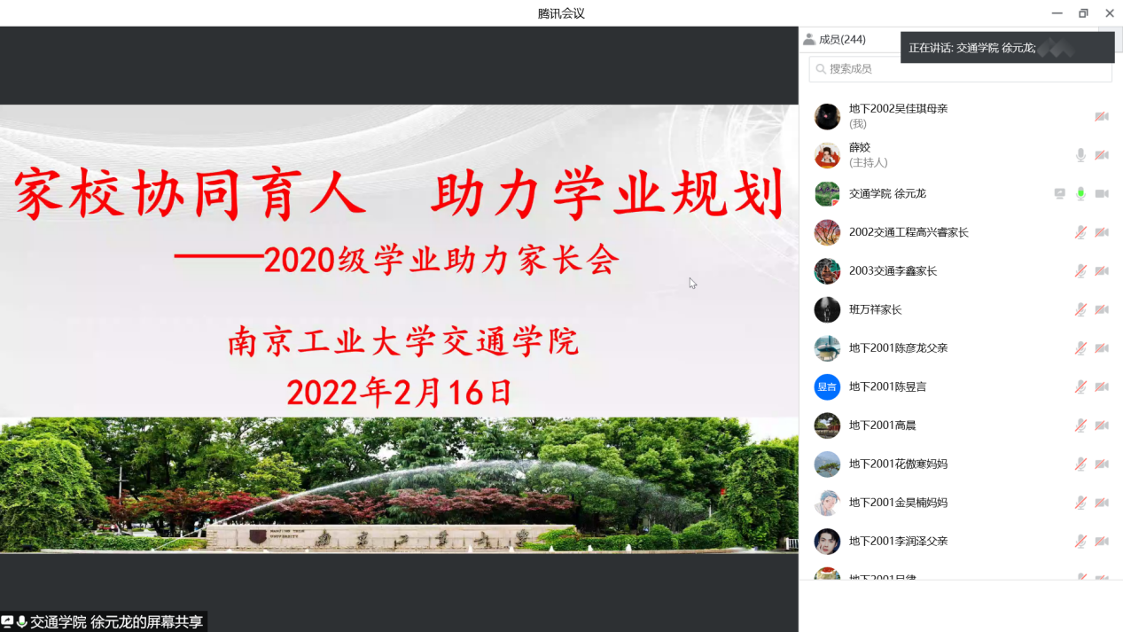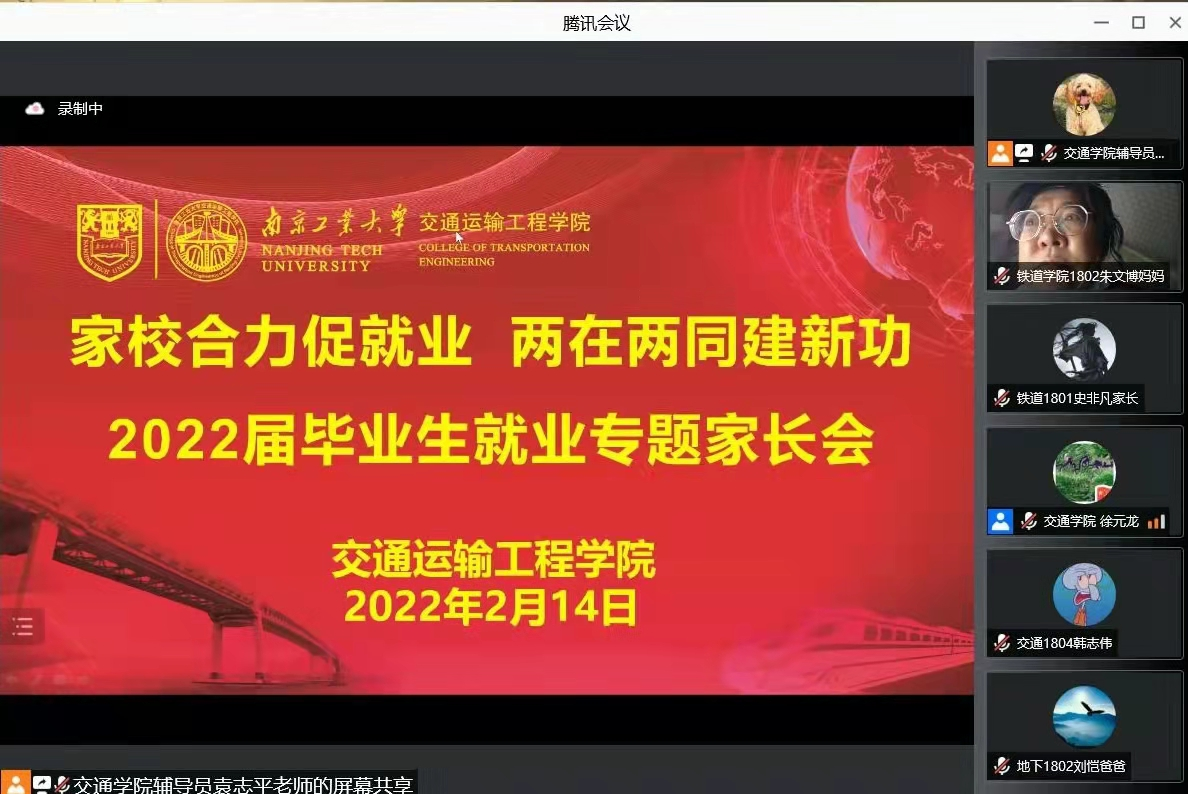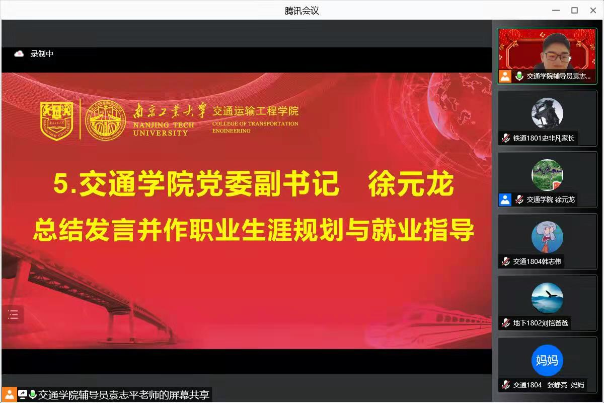 为更好地推进毕业生就业工作,凝聚家校育人合力,2月14日-17日,太阳成集团tyc122cc通过腾讯会议召开“家校齐心协力 助力学子成才”各年级专题家长会。公司党委副书记徐元龙、各年级辅导员和员工家长参加会议。