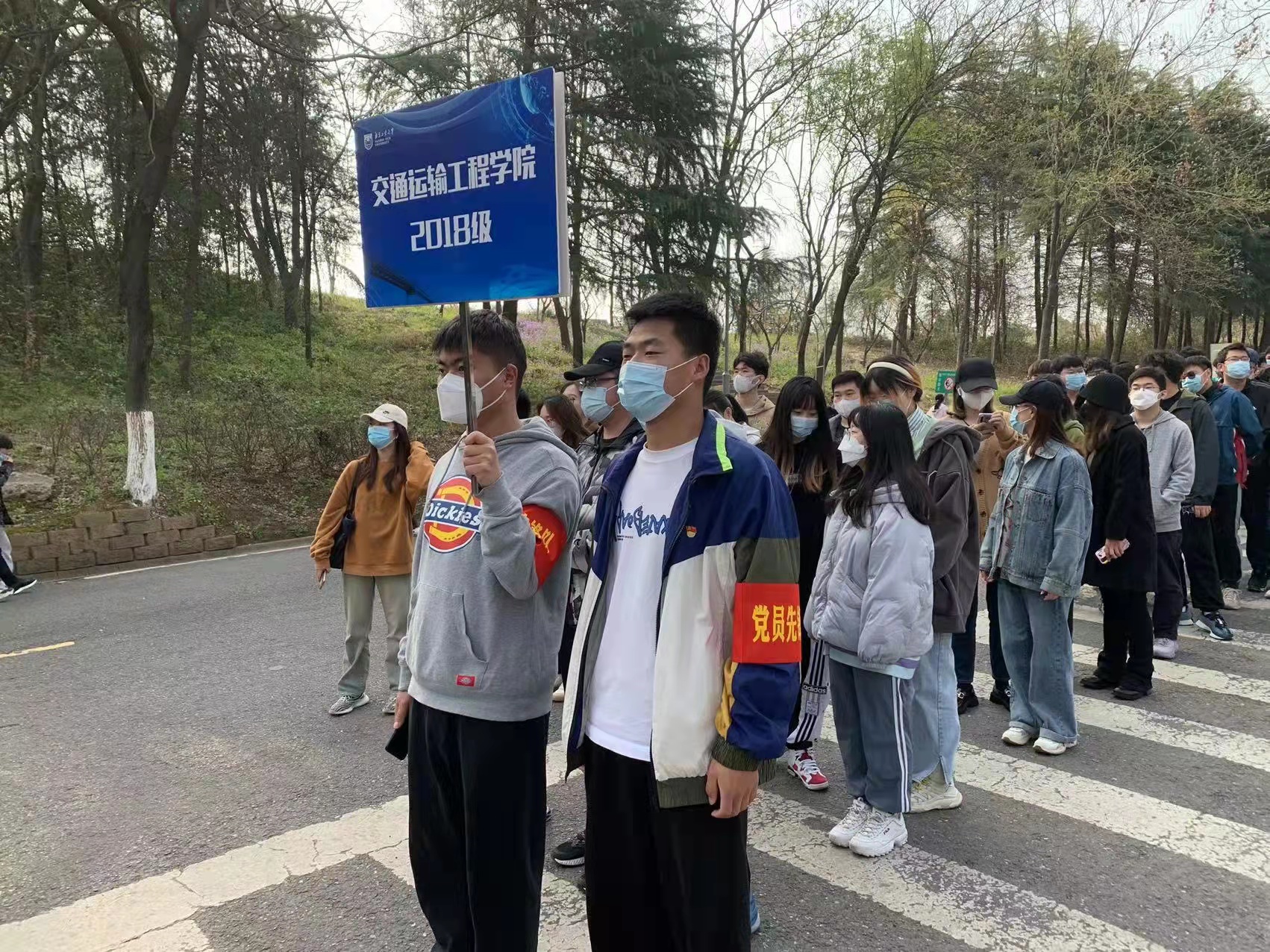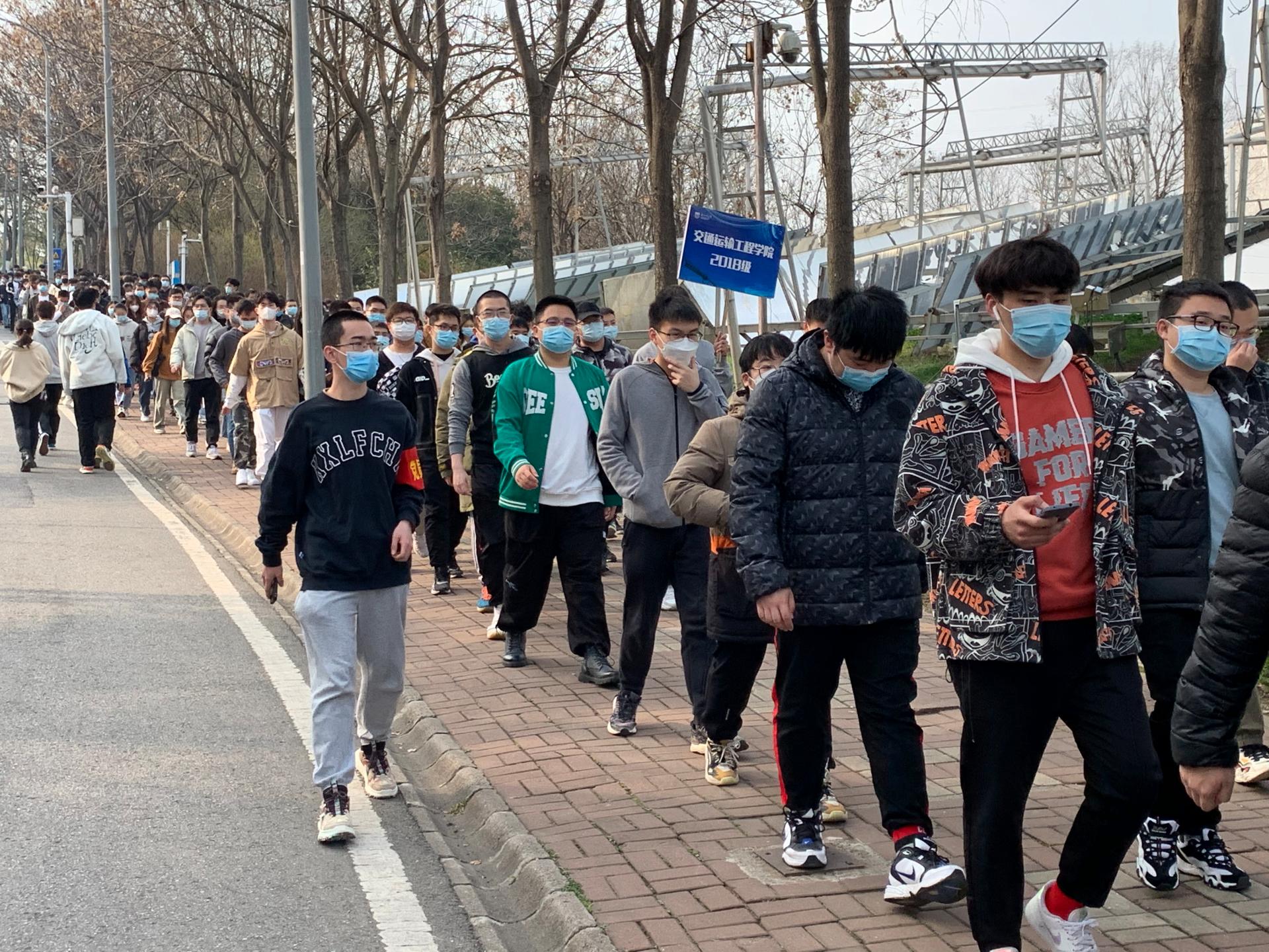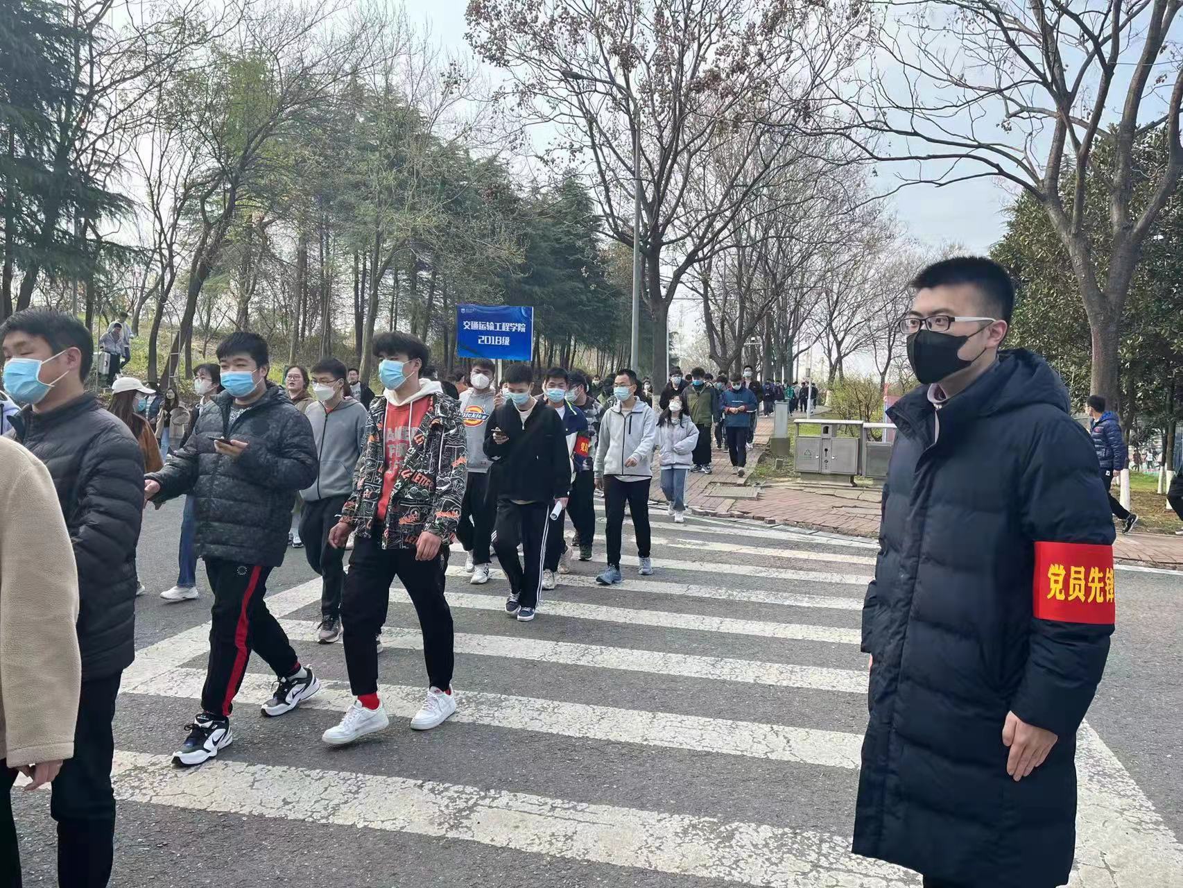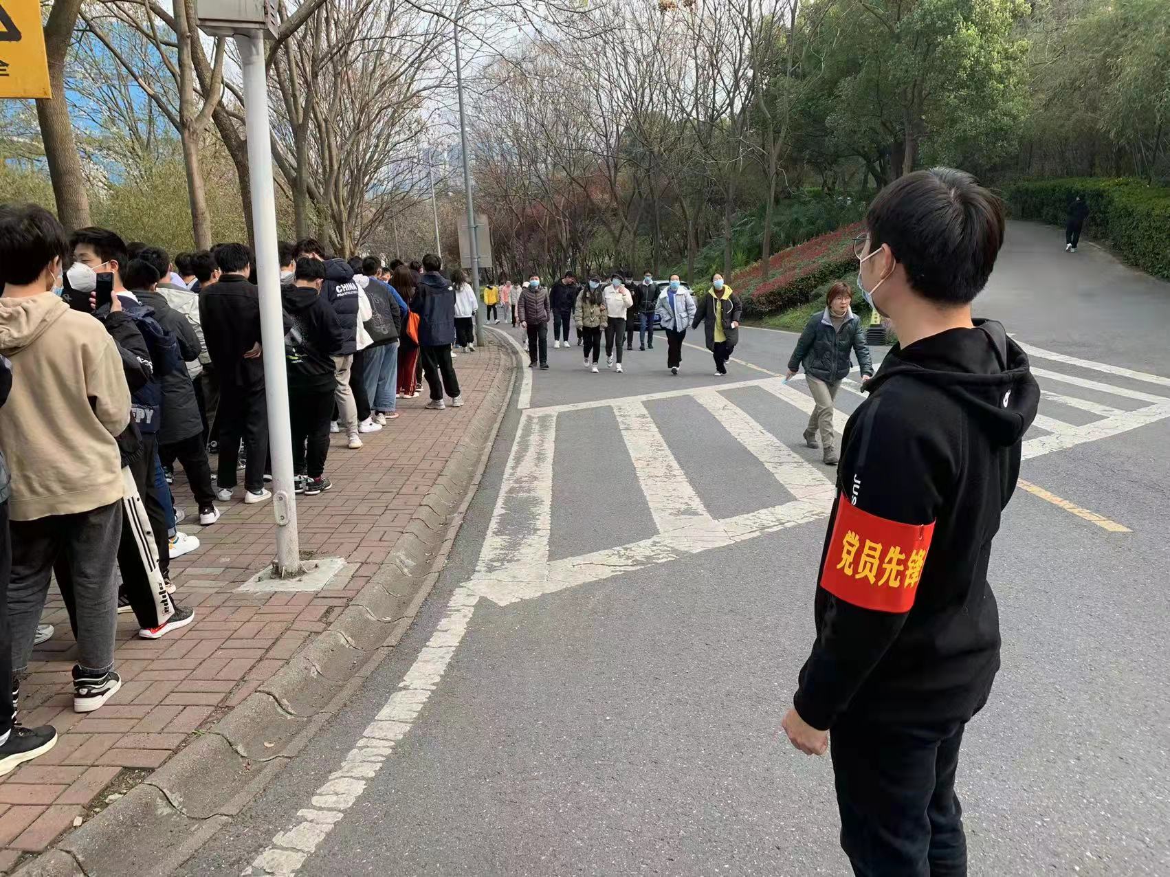 3月23日下午15点20分,学院全体本科生和研究生在江浦校区天宝阁广场集合,以班级为单位列队,清点人数后带队步行前往行健体育馆,完成核酸检测。在公司党委的号召和老师们的精心组织下,公司员工党员志愿者纷纷响应,组成 “党员先锋队”,彰显党员的责任担当。党员志愿者带头执行并严格落实核酸检测工作的各项要求,并在组织学院员工队伍、引导队伍有序入场、提醒同学佩戴好口罩、提前打开核酸检测身份码等方面突显“排头兵”和“贴心人”作用,最大程度地减少了员工的停留时间,提高了检测效率,为同学们全员顺利完成核酸检测提供了有力保障。