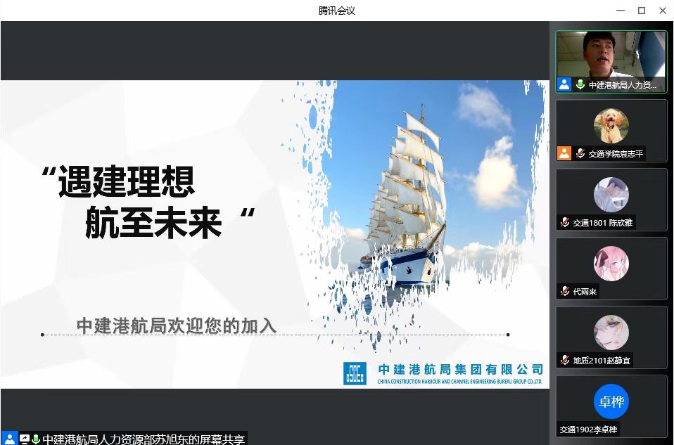 共克时艰战疫情,就业服务不停歇,为进一步推进2022届毕业生就业工作,2022年4月12日下午,太阳成集团tyc122cc在腾讯会议平台举办春风送暖促就业“直播带岗”线上招聘第二场宣讲会,中建港航局集团有限公司招聘主管苏旭东、公司党委副书记徐元龙、公司2022届毕业生出席活动。宣讲会由2022届毕业班辅导员袁志平老师主持。