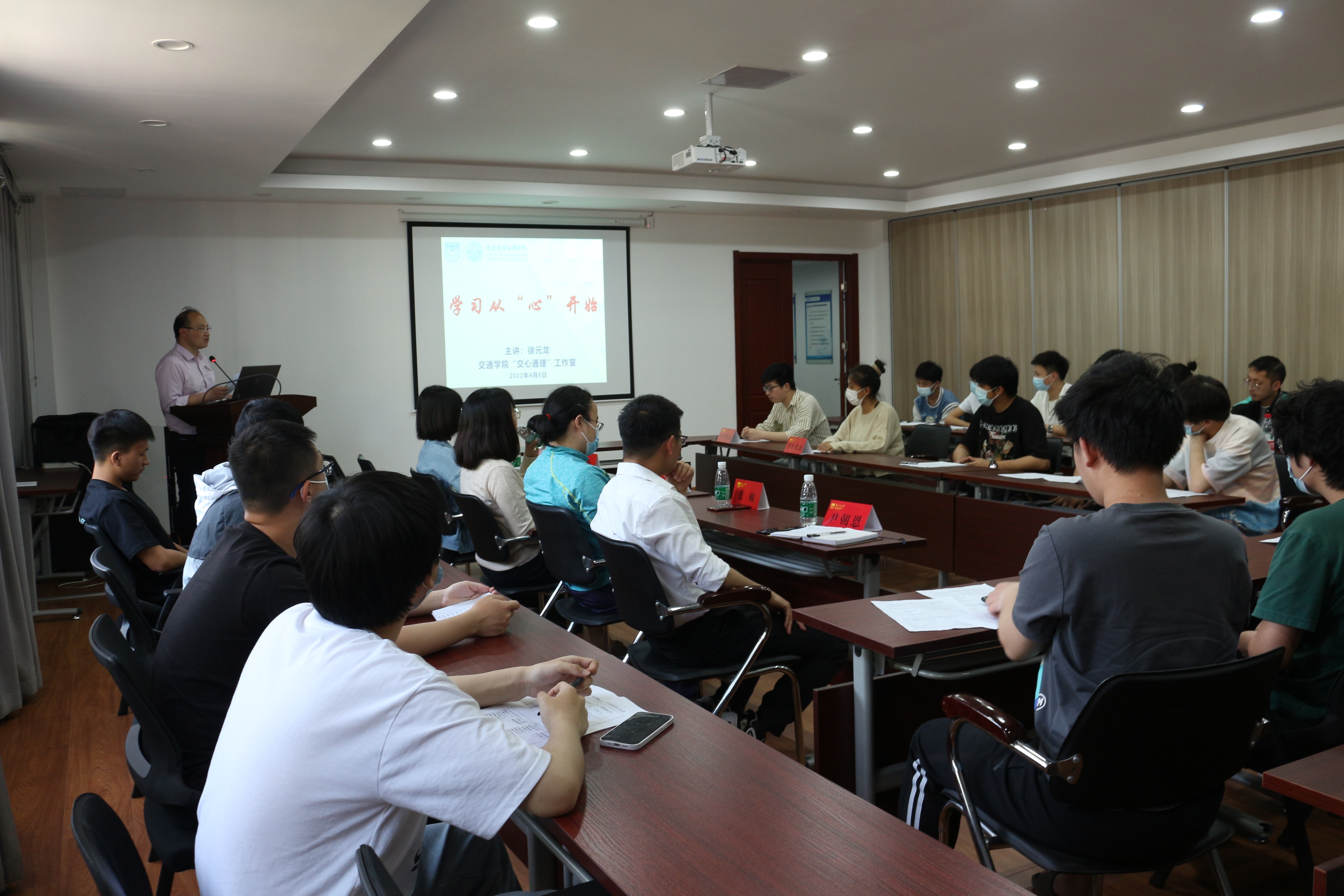 交流会上,导师班主任们结合自己刚步入大学时期的学习生活经验,以及上学期新生学业情况分析,对同学们适应大学学习生活的主动性进行了亲切指导。同学们就自己学习中存在的不足进行深入剖析,比如专业兴趣不足、学习目标缺失尤其是自律能力不够等问题。随后,徐元龙书记以《学习从“心”开始》为题作学业辅导主题报告,围绕同学们学业上普遍存在的不足,从心理学角度进行解析,并从如何树立长中短期目标到若干小目标的实现来不断增强成就感、主动营造良好宿舍学习氛围、如何培养自律能力等方面进行了详细讲解。交流会后同学们集体宣读了自律承诺誓词,通过发自内心的表态,坚定了自己战胜惰性的信念,增强了实现学业大力提升的信心。
