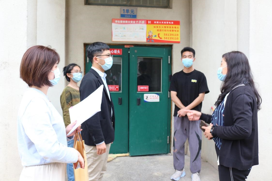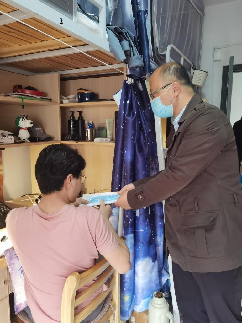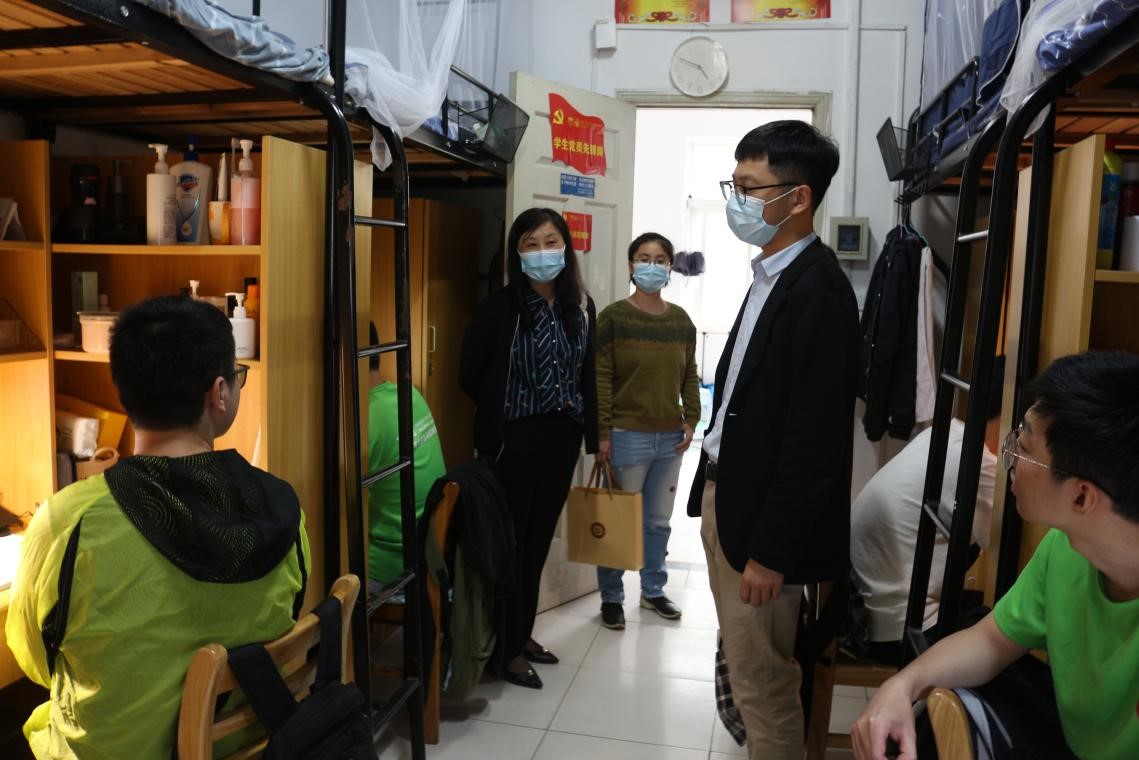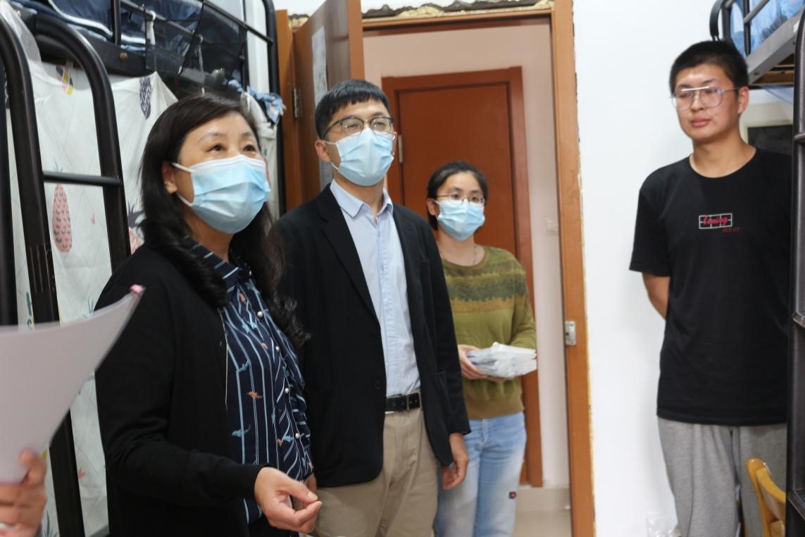 在走访过程中,学院领导、辅导员与员工们亲切交谈,询问线上学业情况和日常生活情况并提出学习生活建议,同时再次强调疫情防控期间的重要纪律要求。叮嘱员工加强防疫意识,提高自我防护意识,注意寝室卫生,多参加体育锻炼,努力提高自身的身体素质。