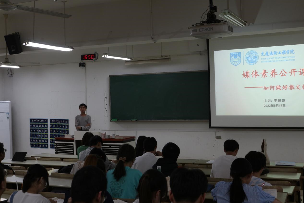 公开课内容丰富,主要分为两部分,一是微信公众号推送工作中所涉及的平台软件、推文基本操作流程以及注意事项、经验交流等环节;二是徐老师讲授新闻稿的重要性、三大特性、六大要素和采访技巧要求等内容,并介绍学校相关的新闻网站,提醒大家日常要多去关注、学习。整场公开课深入浅出,有针对性的激发了同学们提升新闻宣传意识和媒体素养的积极性。