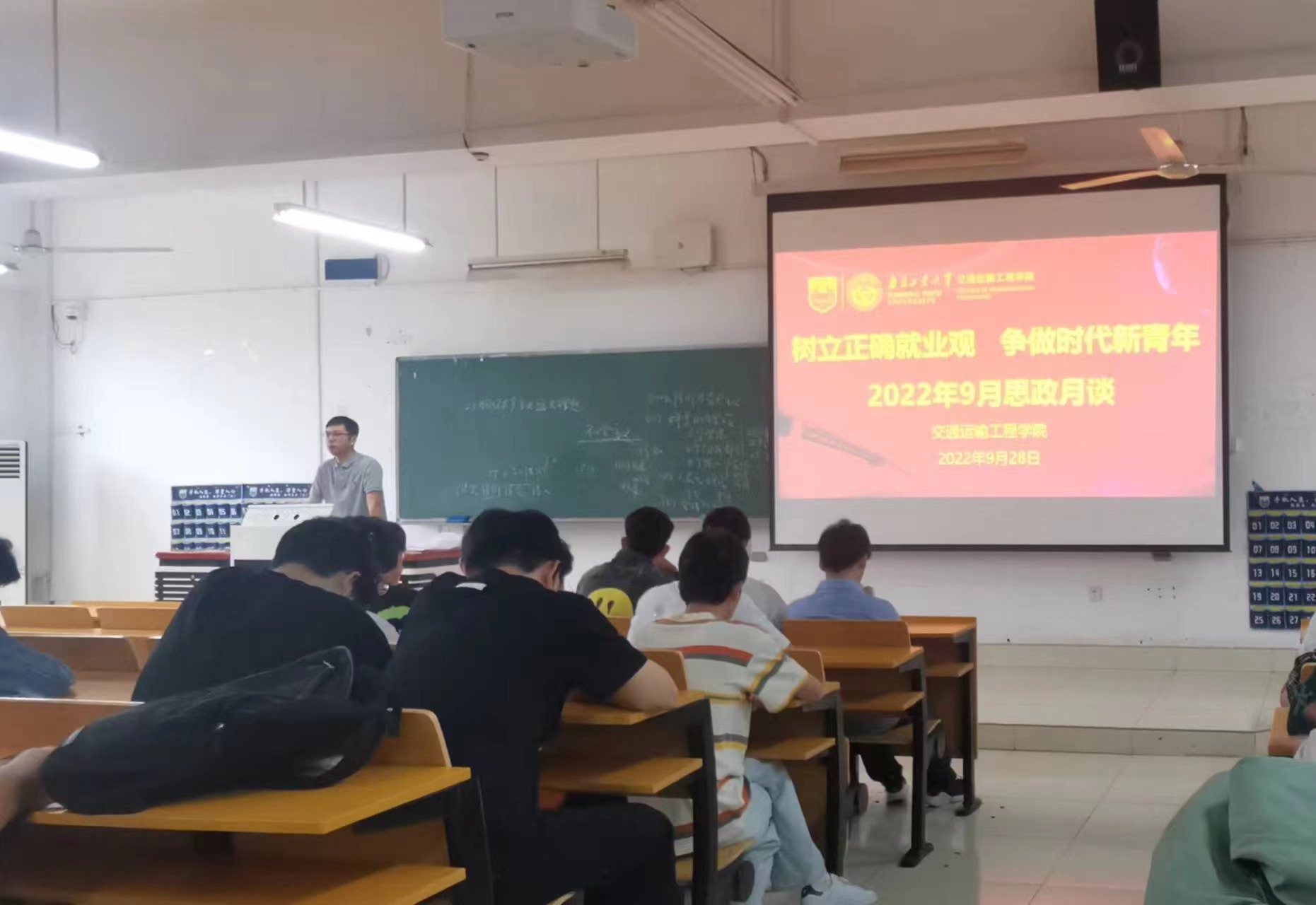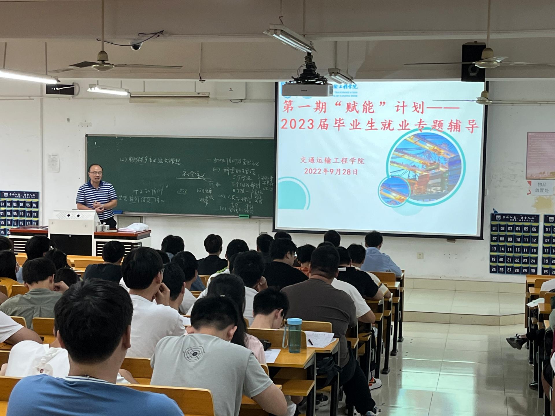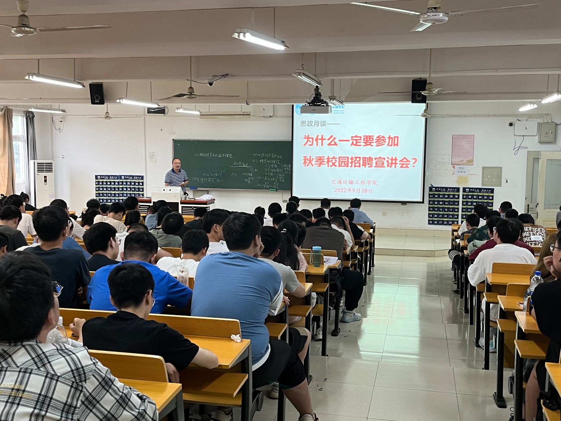 蔡伟老师全面分析了当前严峻的疫情形势,并对学校的疫情防控要求和措施进行了强调和要求。蔡老师分析了当前同学们的学业自查情况与就业进展,提醒同学们做好学业查漏补缺,并对简历制作进行了实例指导,切实提升了同学们在求职中的竞争力。徐老师围绕当前疫情常态化防控下的经济下行态势,包括对基础设施行业就业的冲击,对蔡老师的讲授内容给予高度肯定,并强调当前就业形势的严峻性,围绕“主动就业”、“理性考研”、“就业赋能”等三个方面展开就业指导。徐老师通过数据和案例以“为什么要参加校园秋季招聘宣讲会”为题向同学们强调了黄金秋招季的重要性;通过对往年考研数据的对比分析,建议同学们理性对待考研,合理确定目标院校;通过对求职注意事项与技巧的指导,希望同学们主动参加招聘会,通过岗位探索和自我认知增强人职匹配度,充分发挥个人职业价值。