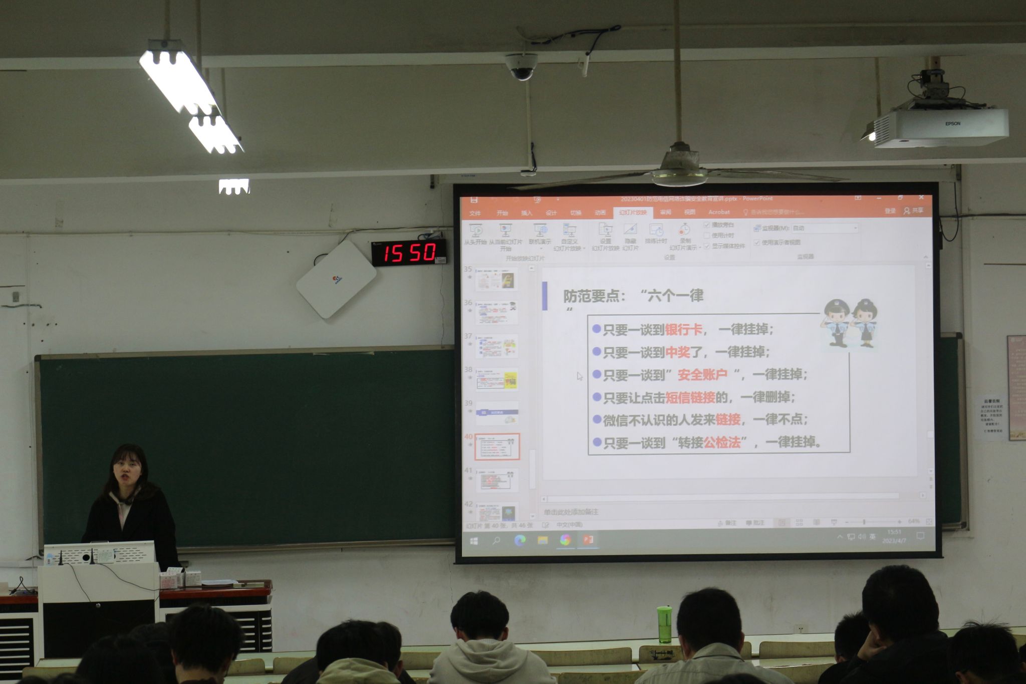 公司反诈宣传员张悦老师结合近期热点,带领员工骨干深入了解网络电信诈骗的手法、流程和作案特点,强调防范要点“六个一律”,要求同学们提升反诈宣传意识和本领,共做“反诈宣讲员”。李佩琪老师根据近期 “思政月谈”活动开展情况,结合学院学风建设质量提升措施,强调员工骨干要充分发挥在学风建设中的引领作用,带头执行和落实学校学院相关学风建设制度,以身作则行程示范效应。王涛老师以丰富的工作经历强调了员工骨干找准自身定位的重要性,鼓励员工骨干要勤学善思,提升政治素养和业务能力,发挥桥梁纽带作用。学办主任蔡伟老师从牢记身份、履行职责、提升能力三个方面对员工骨干们提出了期望,勉励同学们当好领航头雁,引领群雁齐飞。