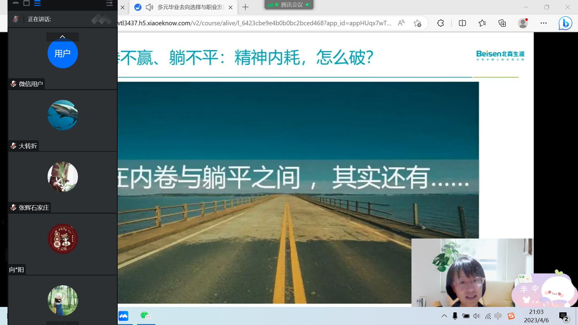 课前,蔡伟老师对2023届暂未就业员工进行就业再动员和指导,结合国内外经济形势剖析了当前就业形势的严峻性,引导同学们客观看待个人目的和社会需求,从实际出发选择职业和工作岗位,尽快投身求职行动,抓好春招关键期。李秋伊老师结合研究生的教育培养和就业形势,针对本科同学在求职中普遍存在的认知偏差等问题进行了讲解,希望同学们端正就业理念,拓宽就业思路,尽快进入职场体验和适应岗位,为接下来职业发展明确方向。在《多元化毕业去向选择与职业发展》公开课中,北森生涯副总裁、生涯研究院经理谭菲雪老师为毕业生们从专业的角度解析就业问题。谭老师从组织视角下人力资本分类、“点线面体”职业发展思维和多元视角下的发展策略等三个方面剖析当代老员工的求职心态和职业困境,助力员工个人职业发展。