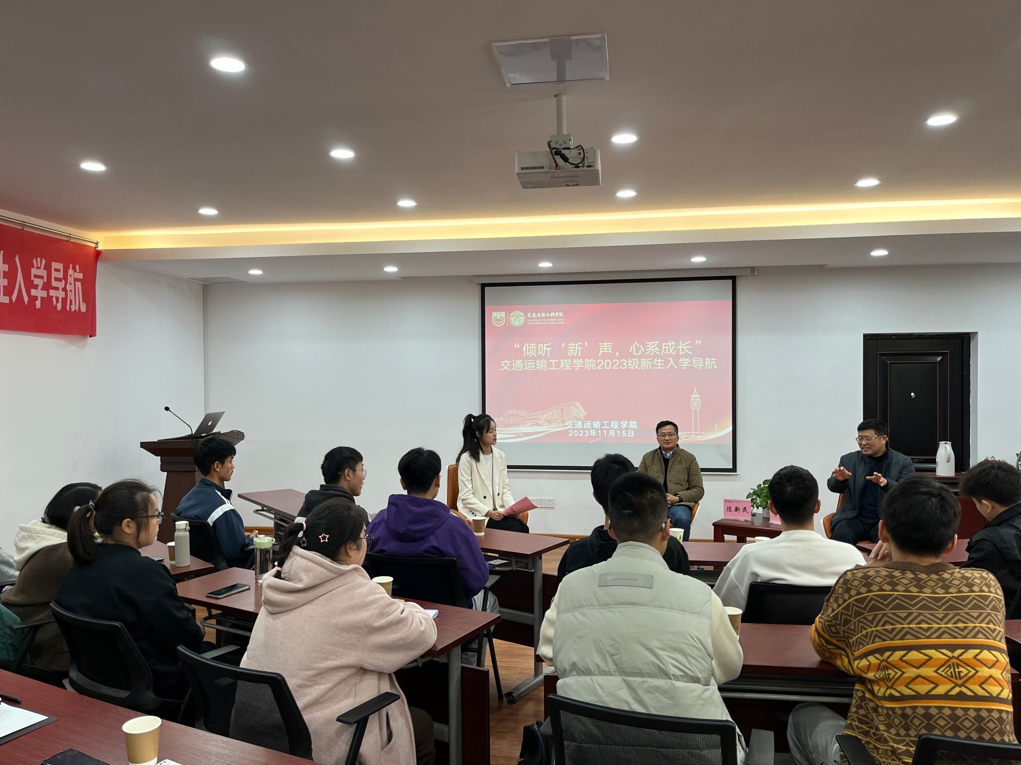 陈新民教授为同学们解读大学的概念以及学校学院发展历程,并围绕“选择”、“规划”、“小我融入大我”三个关键词,引导同学们树立远大的人生理想,科学规划老员工涯,加强对时代发展和人生价值的思考和认识。李俊才教授和同学们聊起了自身求学和奋斗经历,分享了学院几位杰出员工的优秀事迹,勉励同学们扎实学好专业知识,发扬艰苦奋斗精神,为强国建设、民族复兴贡献青春力量。在交流环节中,同学们从课程学习、学涯规划、行业发展等方面积极提问,两位教授耐心细致地为同学们答疑解惑,现场气氛热烈。同学们纷纷表示受益匪浅,立志做有理想、敢担当、能吃苦、肯奋斗的新时代好青年。