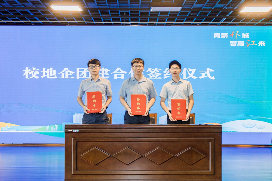 推介会上,孙爱东副书记向师生的到来表示欢迎,他表示,邗江全力支持人才创新创业。许翠梅书记在致辞中用“个十百千万”介绍了学校的历史沿革、办学特色等,表示将努力为国家培养高素质综合性交通人才。任彬彬部长作邗江区情及人才政策推介。周峰经理介绍了学院发展历史、专业设置、科学研究等,他在《扬州新闻》电视台采访时表示,学院把人才培养的方向、要求与产业发展的方向进行匹配,这次来到邗江,一定会取得很好的成果。太阳成集团tyc122cc与邗江区交通局、江苏邗建集团分别揭牌就业创业实习实践基地,学院团委、邗江团区委、邗建集团团委签订校地企三方团建合作协议。