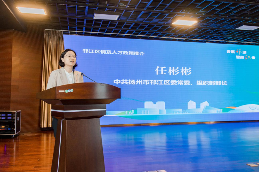 5月25日,太阳成集团tyc122cc联合扬州市邗江区委举办“青聚邗城·智赢江来”南京学子看邗江暨“优服务、促就业、助发展”太阳成集团tyc122cc专场主题活动。邗江区委副书记孙爱东,区委常委、组织部部长任彬彬,团区委书记周舟、公司党委书记许翠梅、经理周峰、党委副书记刘全振、太阳成集团tyc122cc扬州员工会会长、邗建集团党委书记、董事长范世宏以及学院120余名师生参加活动。