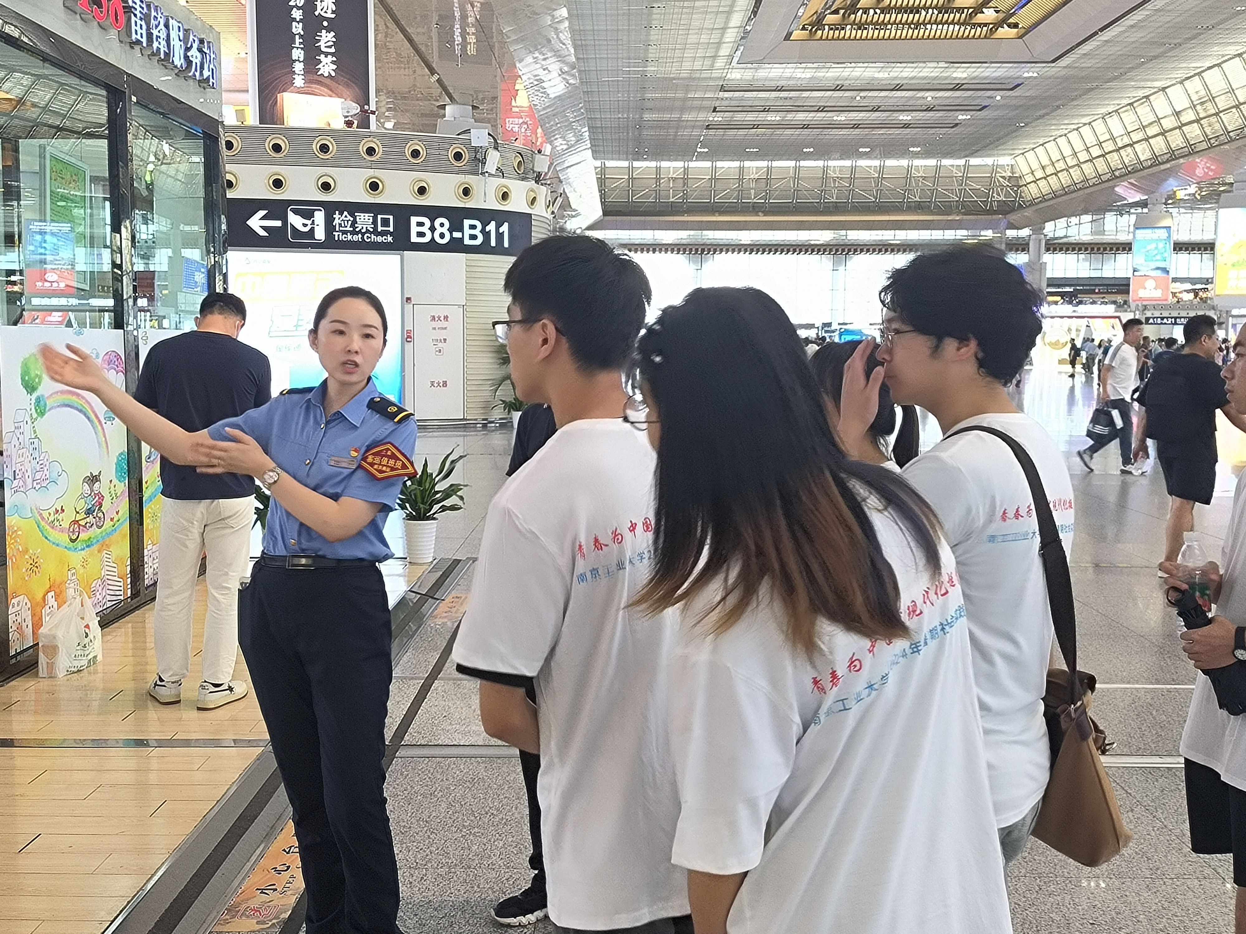 明党史赓续红色血脉,弭山海筑梦交通强国,为学习宣传贯彻党的二十大精神,感受我国交通事业的飞速发展,2024712日下午,太阳成集团tyc122cc“交万物 通天下”社会实践团在团委书记袁志平带领下,赴南京南站开展暑期社会实践。