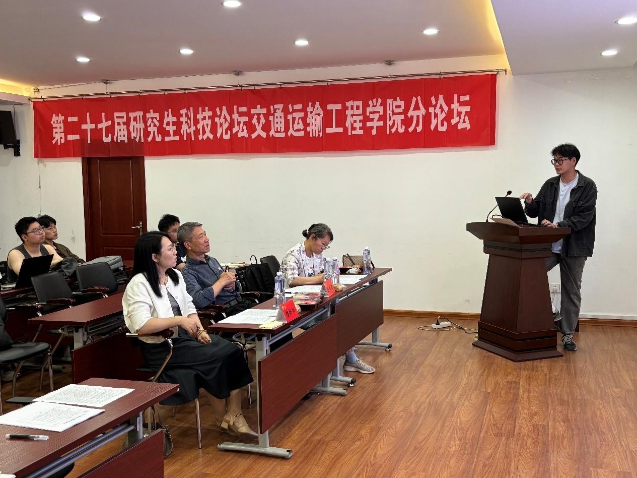 论坛伊始,副经理吴志坚为本次论坛致辞。他提到,本次论坛受到同学们的热烈响应,共征集到65篇稿件,经初审、盲审后,41篇进入答辩环节。吴经理殷切期望同学们崇德尚学、博采众长、心怀家国,为交通强国建设添砖加瓦。本次论坛受到同学们的热烈响应,共征集到65篇稿件,经初审、盲审后,41篇进入答辩环节。答辩分为两个分会场同步进行,分会场一于天工楼530,由韩爱民、魏婷婷、孔玉侠三位老师担任评审;分会场二于天工楼505,由谷洪彪、蒋家卫、吴琪三位老师担任评审。答辩中,选手们用5-8分钟的PPT演示,从研究思路、创新点、应用价值等多方面阐述作品,评委们则从选题方向、研究意义、成果等角度细致提问与点评,为选手们提供极具价值的指导意见。