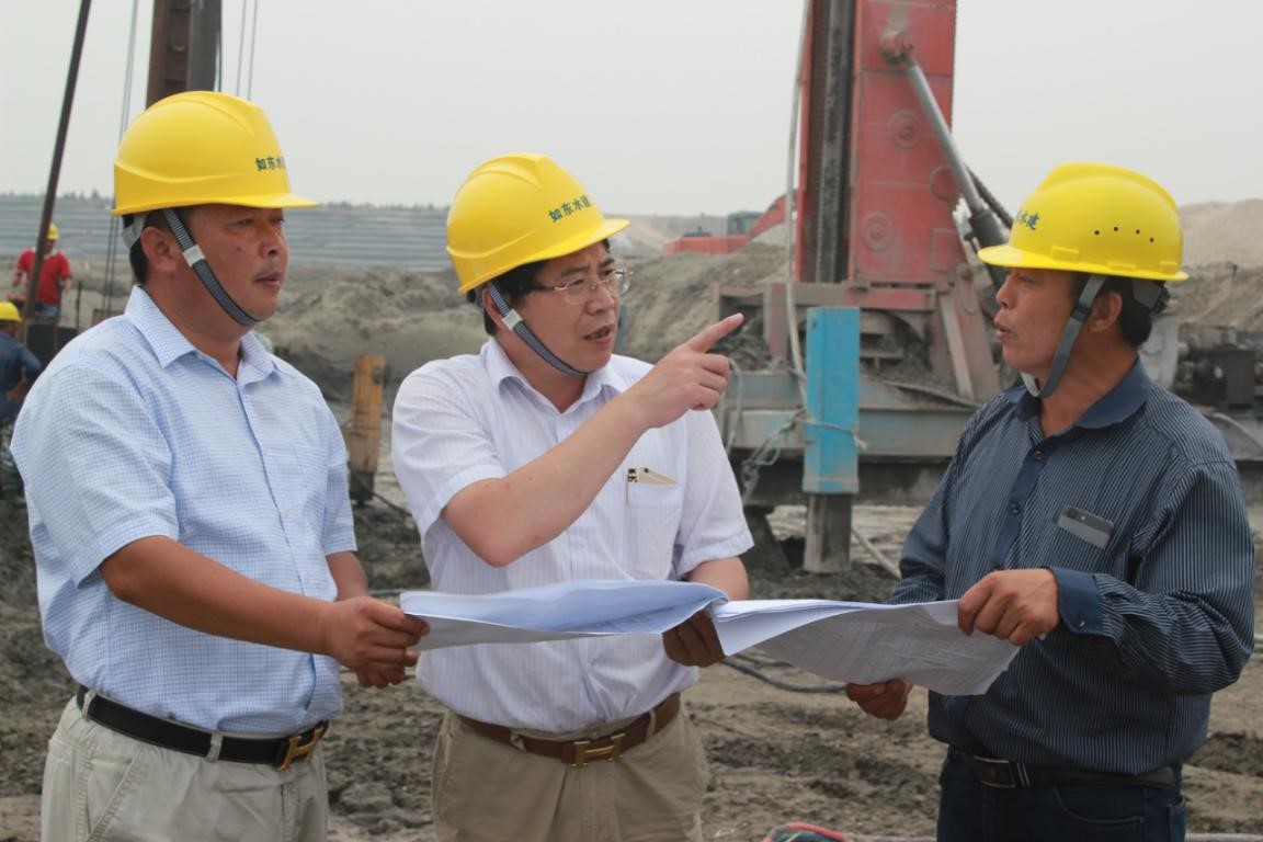 邓亚光在劲性复合桩施工现场指导工作