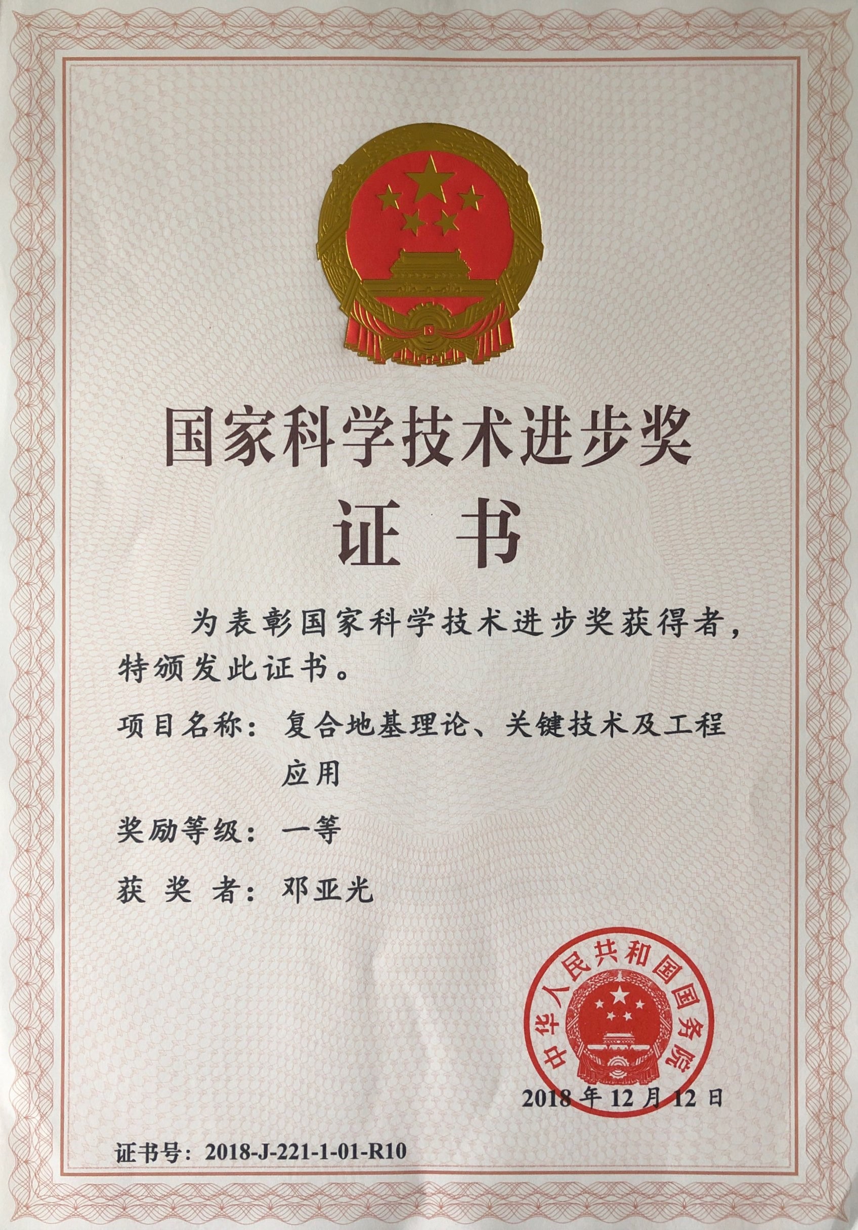 邓亚光获得2018年国家科技进步一等奖