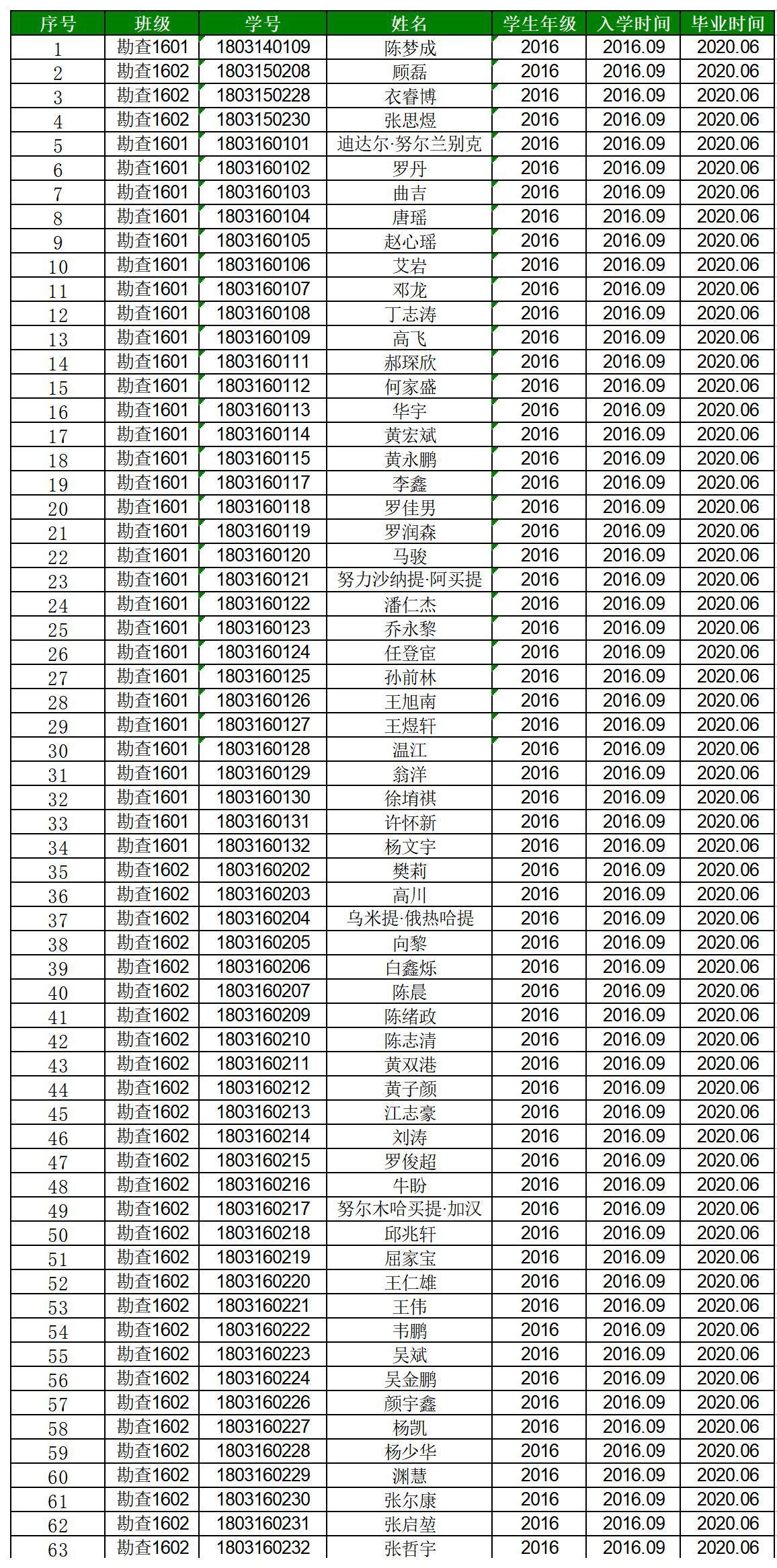 太阳成集团tyc122cc2020届地质工程专业毕业生名单