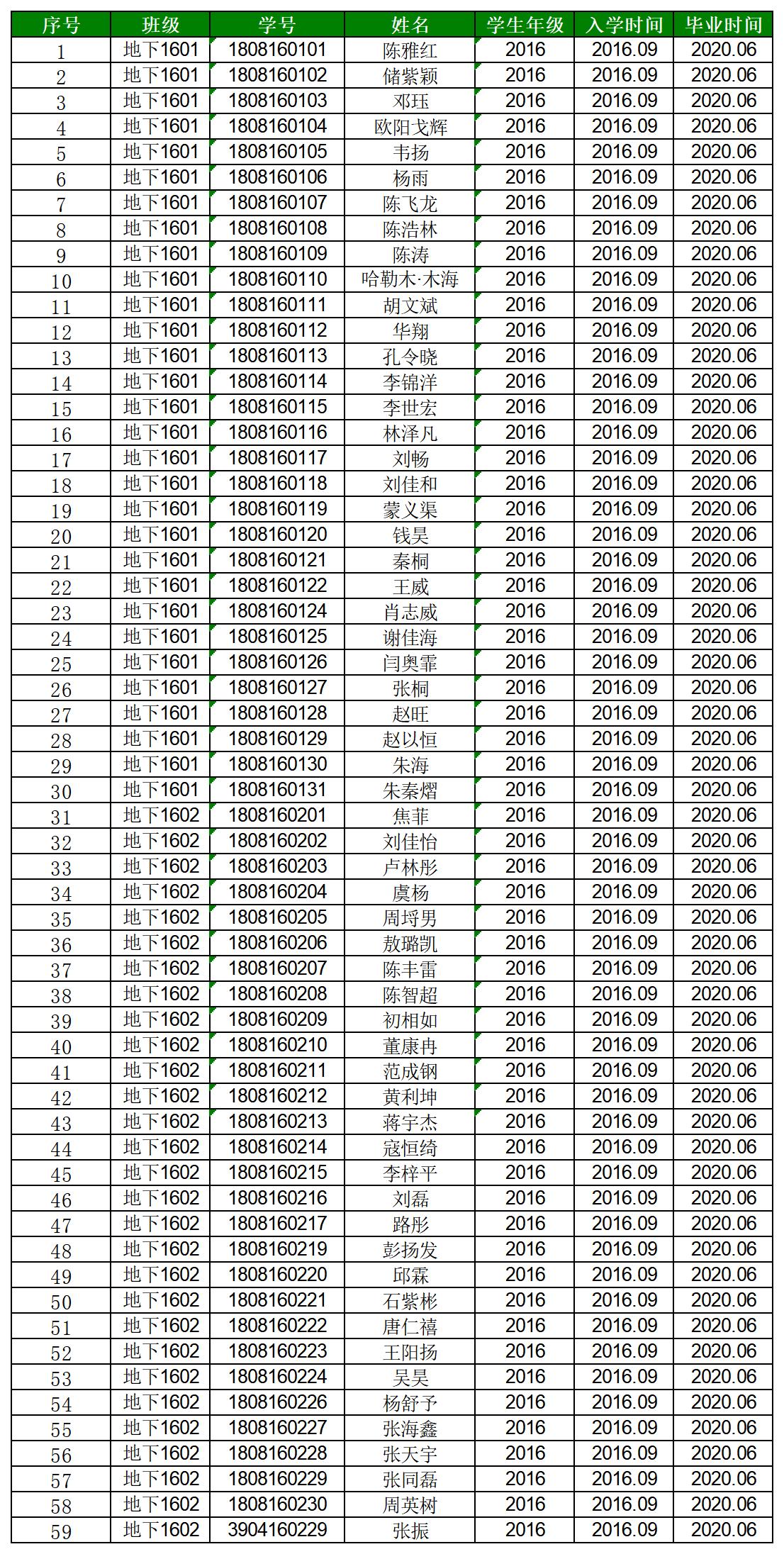 太阳成集团tyc122cc2020届城市地下空间工程专业毕业生名单