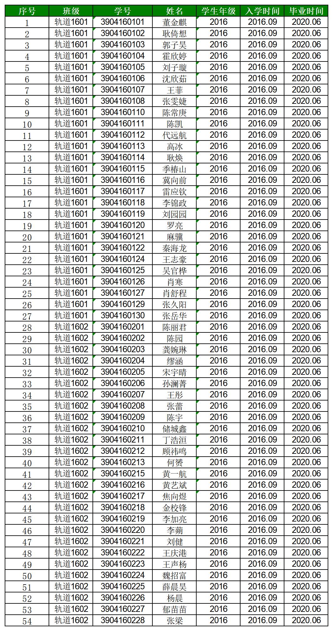 太阳成集团tyc122cc2020届铁道工程专业毕业生名单