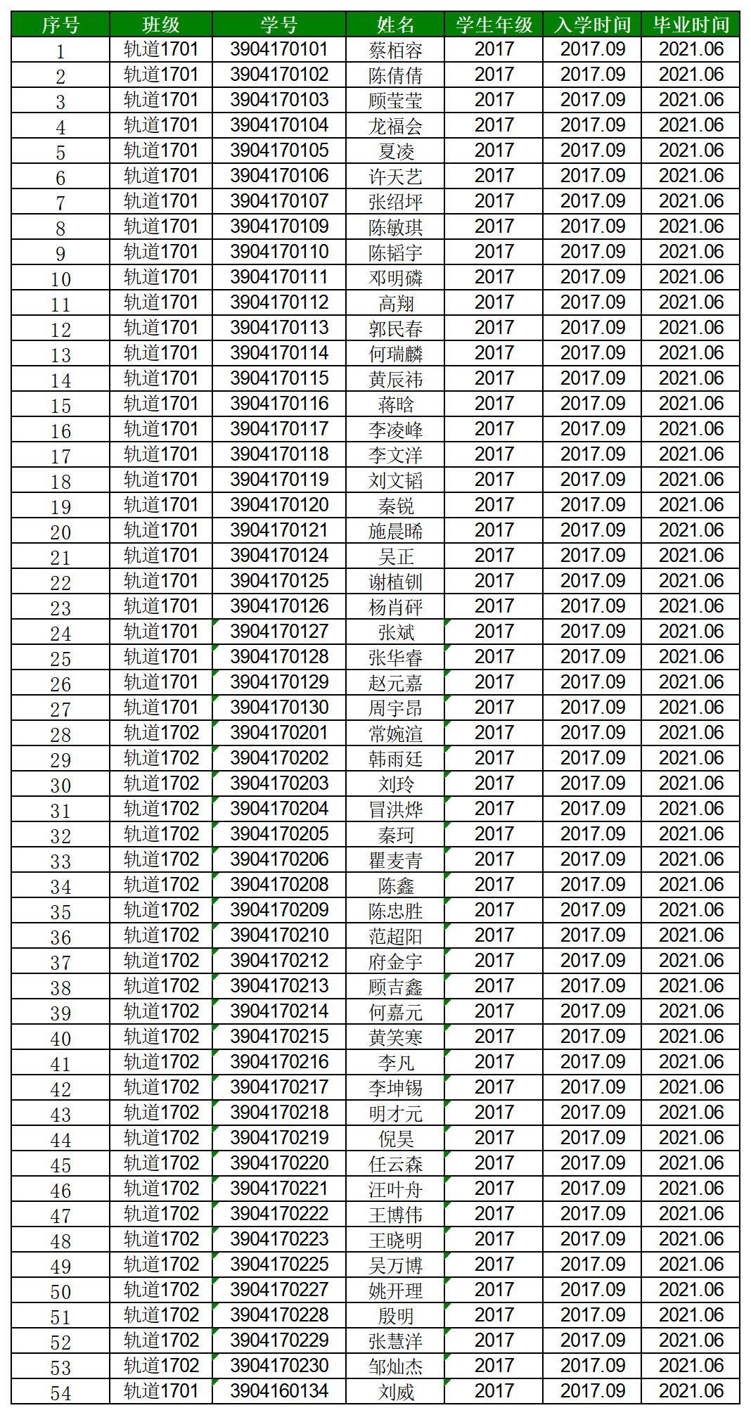 太阳成集团tyc122cc2021届铁道工程专业毕业生名单