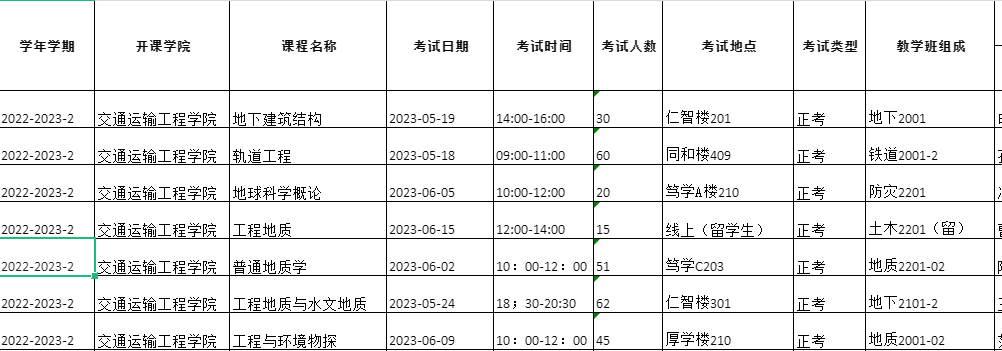 太阳成集团tyc122cc2022-2023学年第二学期自排课程考试安排表②